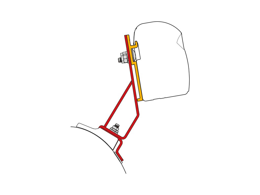 Tento typ adaptéru zajišťuje přímé uchycení F43van markýzy na stěnu PSA dodávky, což je důležité, protože u těchto vozidel obvykle není standardní boční „rain gutter“ lišta pro přímé uchycení markýzy
