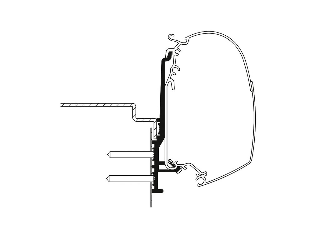 Speciální boční (stěnový) držák/adaptér pro montáž Thule Omnistor 5200 markýzy délky 3,00 m na Knaus Tourer CUV (500 model).