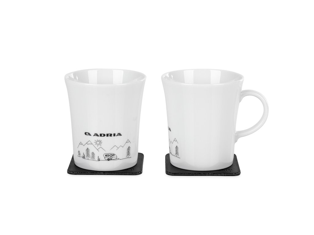 Toto je sada dvou magnetických porcelánových hrnků s uchem s motivem „WOHNWAGEN“ (obytný přívěs / caravan) od ADRIA – ideální pro použití v obytném voze, karavanu nebo doma při kempování.
