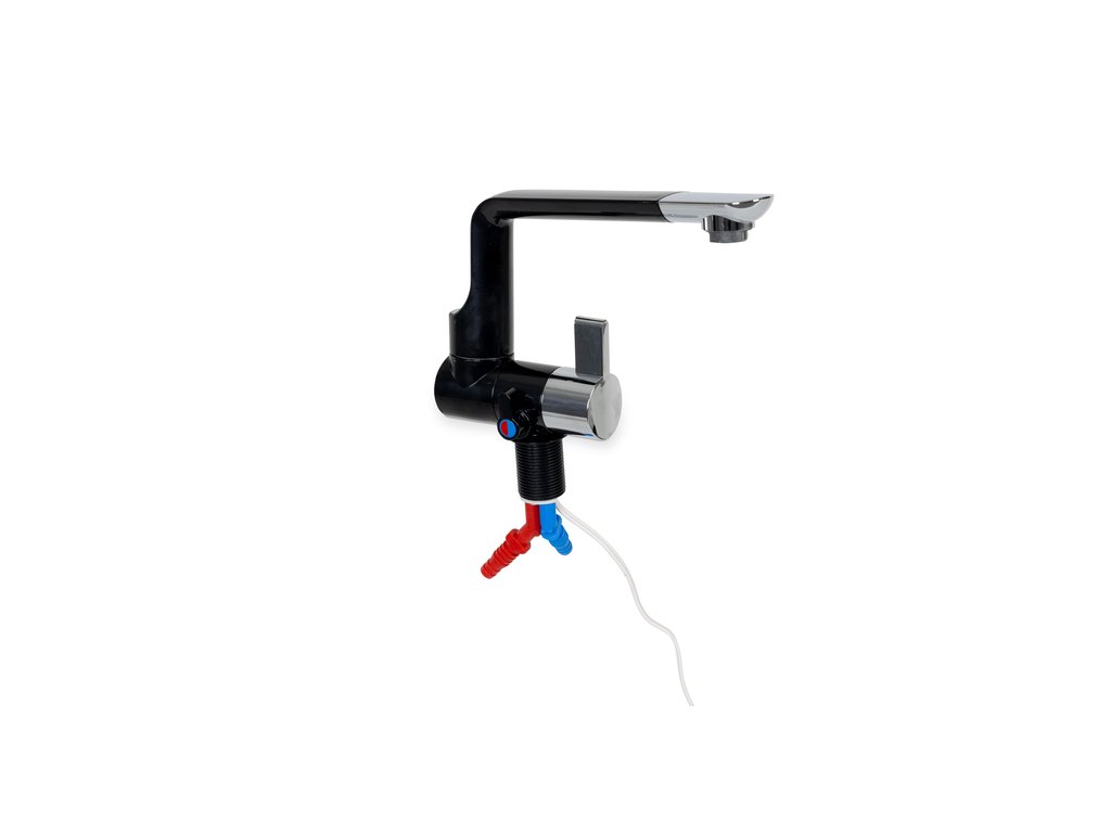 Jednoruční pákový směšovač (mixuje teplou a studenou vodu nebo funguje jako studená varianta) – tradiční typ vodovodní baterie pro malé kuchyňské nebo umyvadlové prostory.
