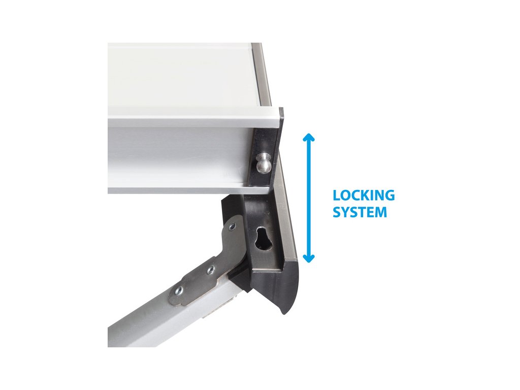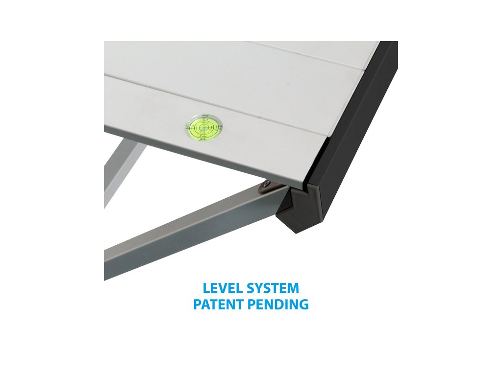 Hliníkový stůl s rolovací deskou a speciálním snadno sestavitelným skládacím rámem.