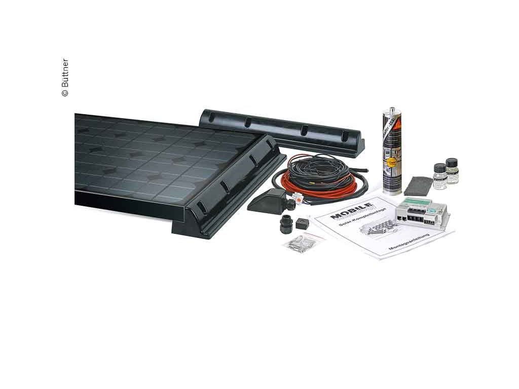 Instalační sada obsahující vše, co je potřeba k montáži solárního systému pro obytný automobil. Dodává se s odpovídajícími profily spoileru a stabilní střešní průchodkou. Tyto komponenty vyrobené z vysoce kvalitního PUR plastu jsou bezpečné před škodlivým UV zářením a také extrémně odolné vůči povětrnostním vlivům. Solární moduly jsou našroubovány na profily spoileru, což umožňuje demontáž systému kdykoli při výměně vozidla. Samotný držák je na střechu přilepen speciální lepicí sadou. Výhodou lepení je, že do střešního pláště nemusí být vyvrtány žádné upevňovací otvory.