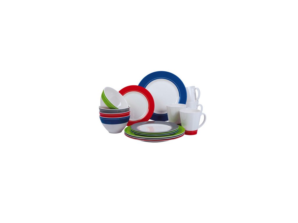 Camp4 sada melaminového nádobí BURANO pro 4 osoby – 16 dílů v krásných barvách. Lehká, nerozbitná a ideální do karavanu, na kempování i na zahradu.