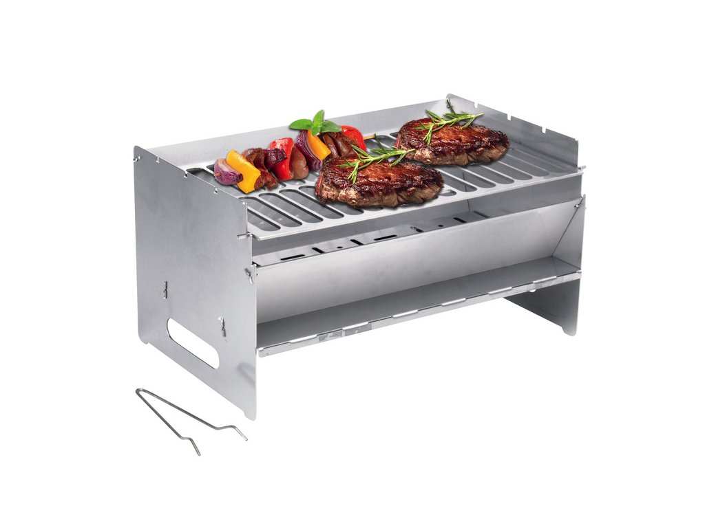 Skládací gril se snadno přenáší a je připraven k použití po několika jednoduchých úkonech, stejně rychle se také opět složí.
