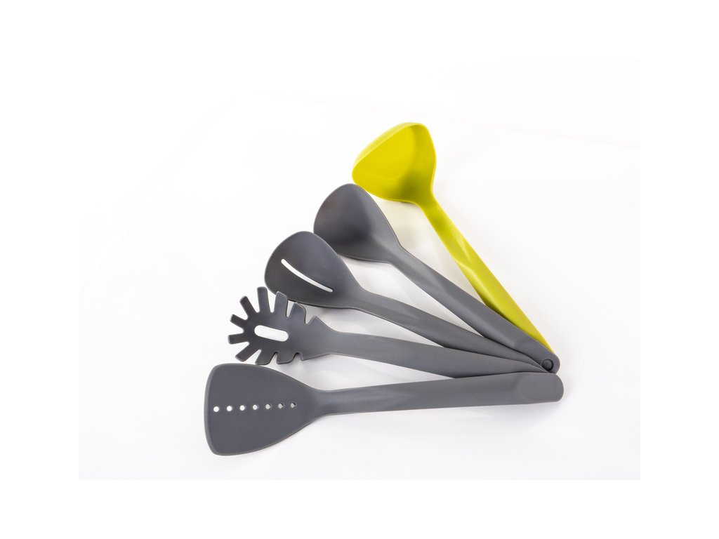 Sada obsahuje 5 ks náčíní; naběračka,špachtle,naběračka na těstoviny,lžíce,servírovací lžíce