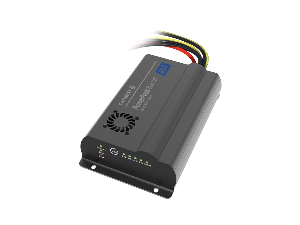 Carbest PowerPeak Booster 40 A je moderní 12 V nabíjěcí booster / nabíjecí zesilovač, který zvyšuje dobíjecí výkon vašeho elektrického systému. Booster využívá integrovanou MPPT (Maximum Power Point Tracking) solární regulaci, která optimalizuje efektivitu dobíjení z fotovoltaických panelů nebo alternátoru.
