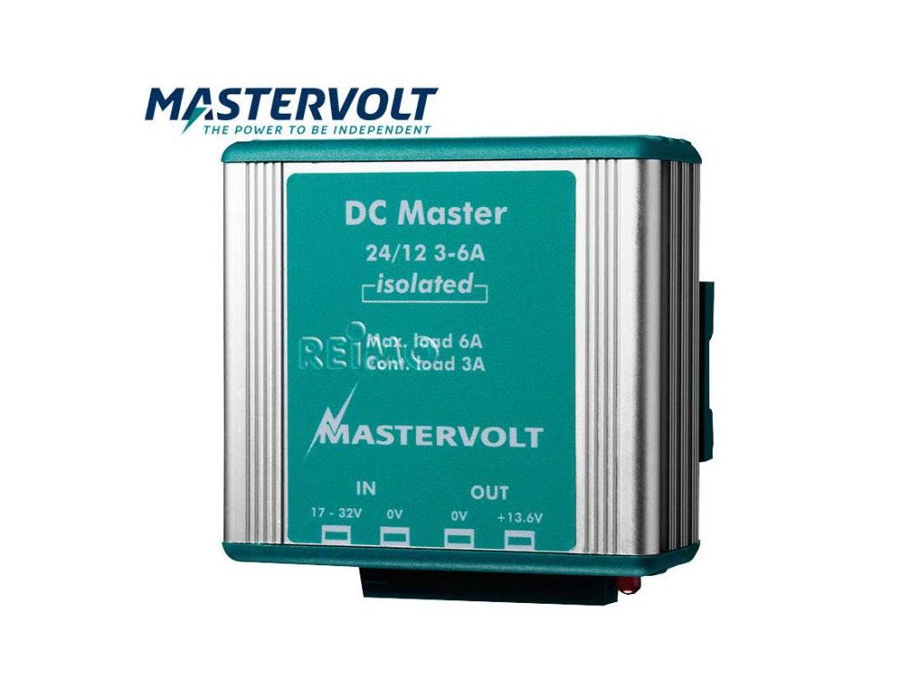 Toto je Mastervolt DC-DC převodník 12 V/24 V → 24 V/12 V s výkonem až 3 A (≈ ~36–82 W) – vhodný pro napájení zařízení v obytných vozech, lodích a dalších aplikacích.