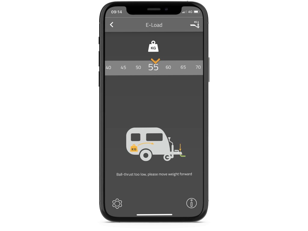 Pomocí E-Load lze snadno a přesně změřit hmotnost přídě karavanu. Stisknutím tlačítka uvidíte hmotnost přídě s odchylkou +- do 2 kg a můžete bezpečně cestovat.