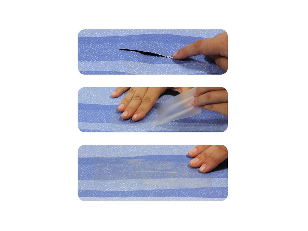 Pásky pomáhají zalepit trhliny v tkanině markýzy