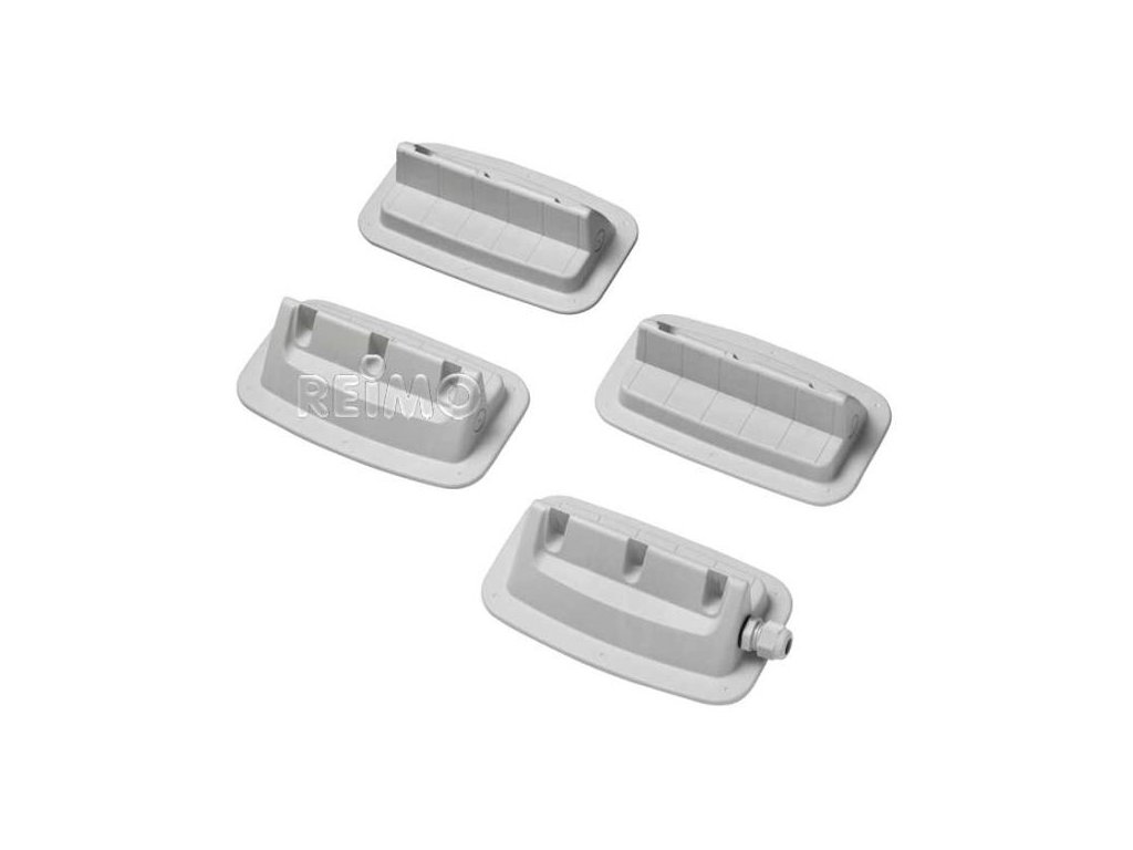 Sada držáků z vysoce kvalitního plastu. V aerodynamickém provedení se širokou škálou použití, např. Pro obytné vozy, karavany nebo ploché střechy. Je extrémně odolný (testováno TÜV) a odolný proti stárnutí. Není nutná žádná další implementace. S kompaktními povrchy šroubů pro vysokou odolnost proti vodě a odvodňovacími drážkami v nosné ploše, stejně jako centrovacími drážkami jako montáž.