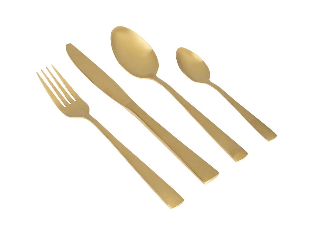 | Specifikace: | Vhodné pro: 4 osoby <strong>Sada obsahuje 16ks příborů </strong> Barevné provedení:<strong> zlatá</strong> Materiál: <strong>nerez</strong> |