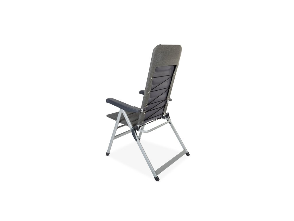 Materiál: 600D polyester (šedě melírovaný), konstrukce: hliník (matně stříbrný), max. nosnost 120 kg, sedací plocha V 47 x Š 52 x H 54 cm.