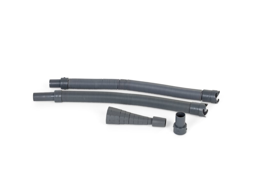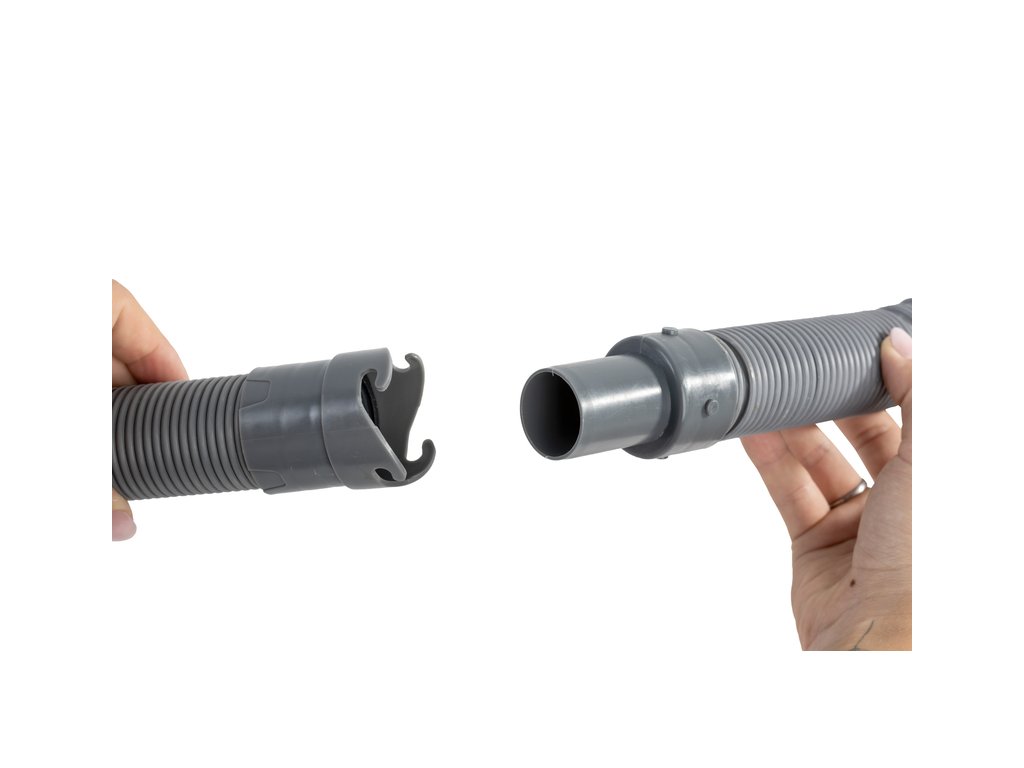 - Materiál: flexibilní a ohybný materiál z odolné plastové směsi zajišťuje jednoduché natažení, ohnutí a vedení odpadní hadice i na nerovném nebo omezeném prostoru.