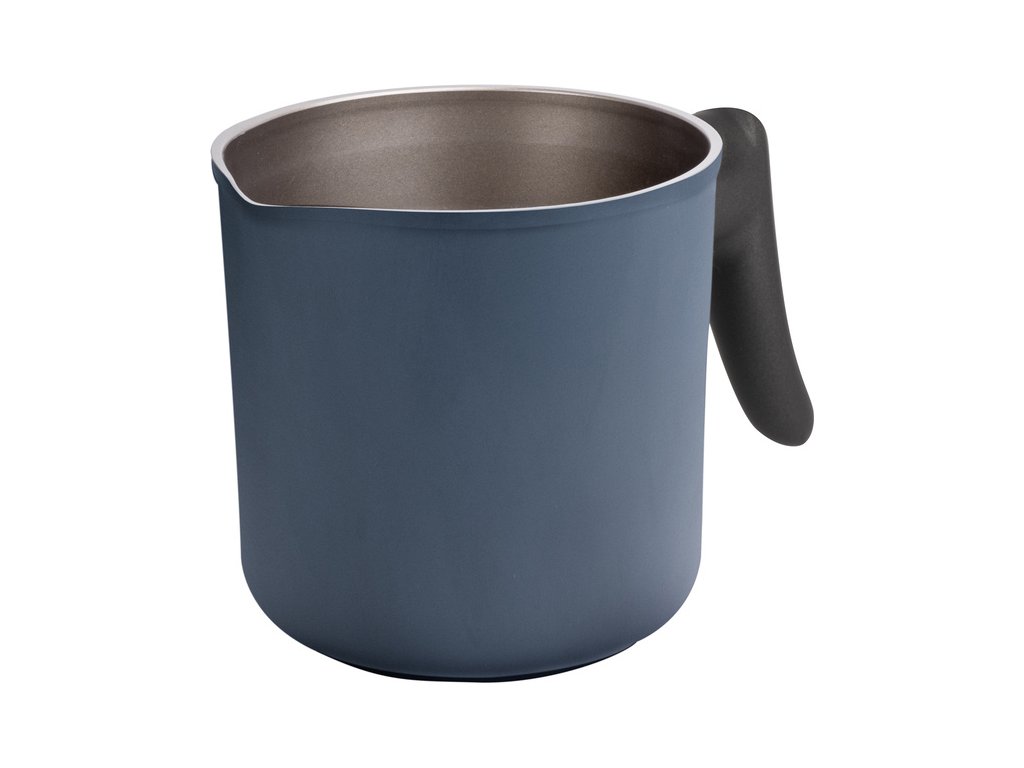 Hrnec na mléko s tepelně izolační rukojetí a nepřilnavým povrchem.