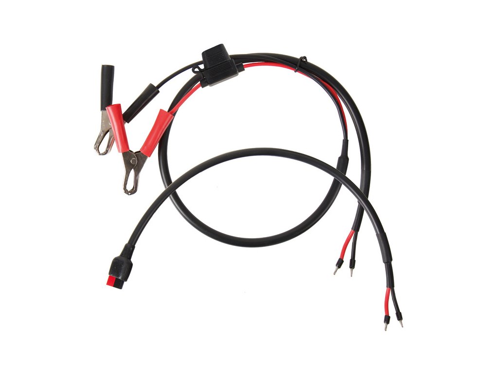 Bateriové svorky zajišťují pevné a stabilní připojení k pólům baterií, zatímco volné konce kabelů umožňují připojení k solárnímu regulátoru podle typu svorek. Kabely mají dostatečný průřez pro přenos solárního proudu a jsou vhodné pro 12V i 24V systémy.