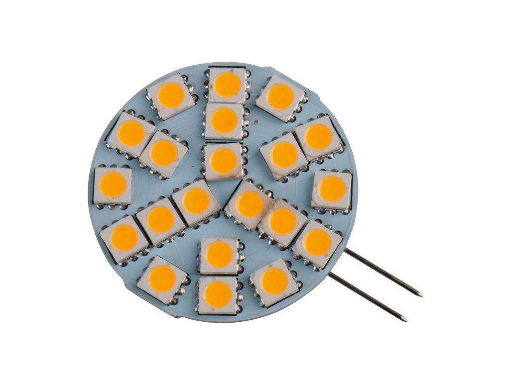 LED žárovka G4 s 21 SMD LED, příkonem 3 W, plochou deskou a bočními kolíky poskytuje příjemné teplé bílé světlo pro karavany, obytné vozy, lodě a dekorativní osvětlení. Energeticky úsporné provedení, jednoduchá montáž a dlouhá životnost z ní činí ideální řešení pro nízkonapěťové aplikace.