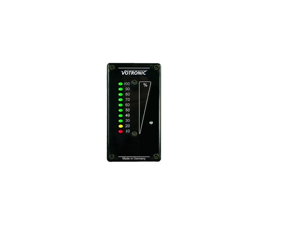 VOTRONIC LED Tank Display HE 420 je digitální panel s LED ukazatelem pro měření a zobrazení naplnění nádrže (např. čer- stvá voda, odpadní voda, palivo, apod.) ve vozech, obytných autech, karavanech nebo jiných aplikacích s 12 V/24 V systémem