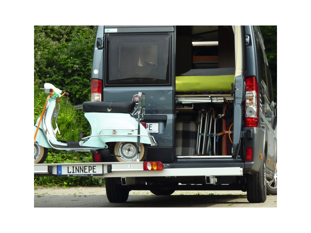| Specifikace: | Váha nosiče - 59Kg | Rotměry - 650mm x 2000mm | Nosnost - 170Kg | Integrovaná nájezdová rampa | Integrované zadní osvětlení |