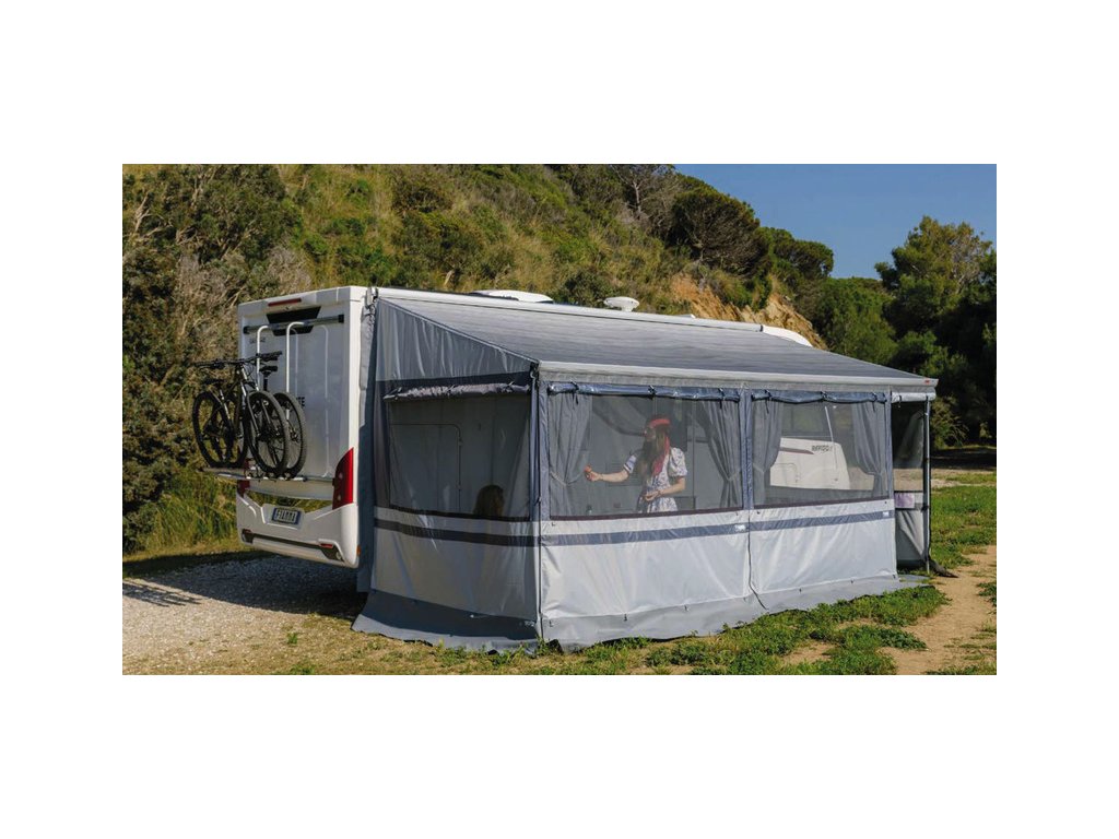 Lehký, rychle instalovatelný přístřešek (předstan) pro markýzy Fiamma F80S s výškou vozidla 245 – 280 cm, ideální pro letní až přechodové sezóny, když chceš rozšířit obytný prostor pod markýzou