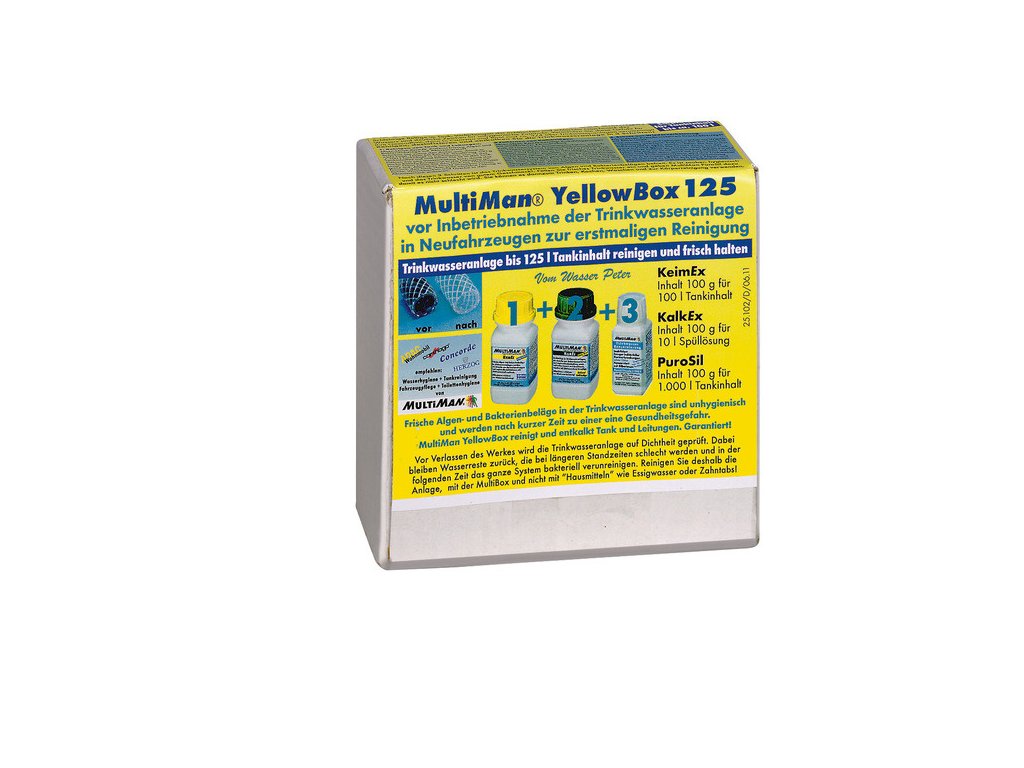 MultiMan Kompletní sada pro použití před uvedením systémů pitné vody Yellow Box 125 100 g Keim Ex, 100 g Kalk Ex, 100 g Puro Sil 125 g pro nádrže na pitnou vodu do 125 l