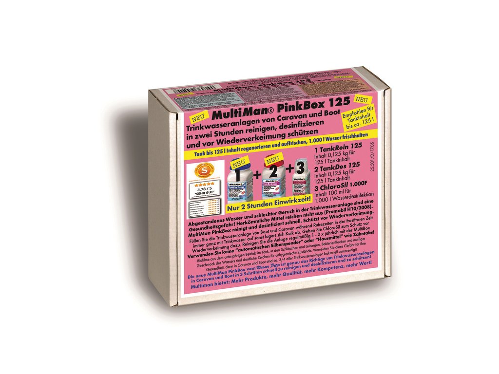 MultiMan Kompletní sada pro rychlé čištění systémů pitné vody Pink Box 125 g Tank Pure 125g, Tank Des 100g, Chlorosil 100ml 125 g pro nádrže na pitnou vodu do 125 l