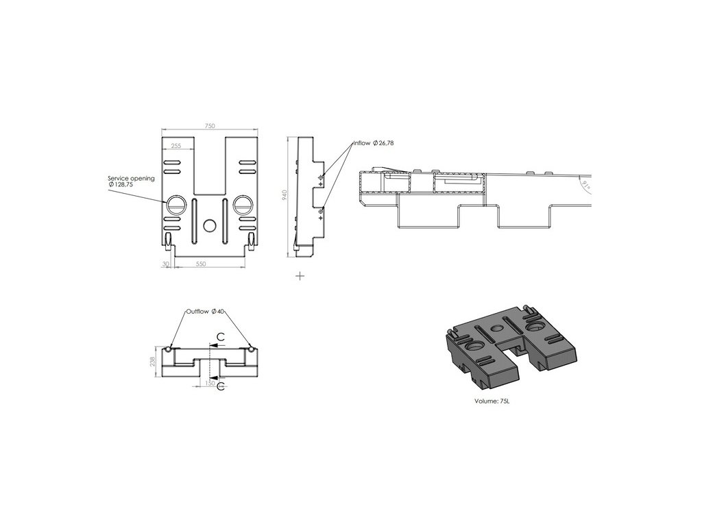 Odpadní nádrž na vodu pro vozidla Ducato/Jumper/Boxer od roku 2018 o objemu 75l