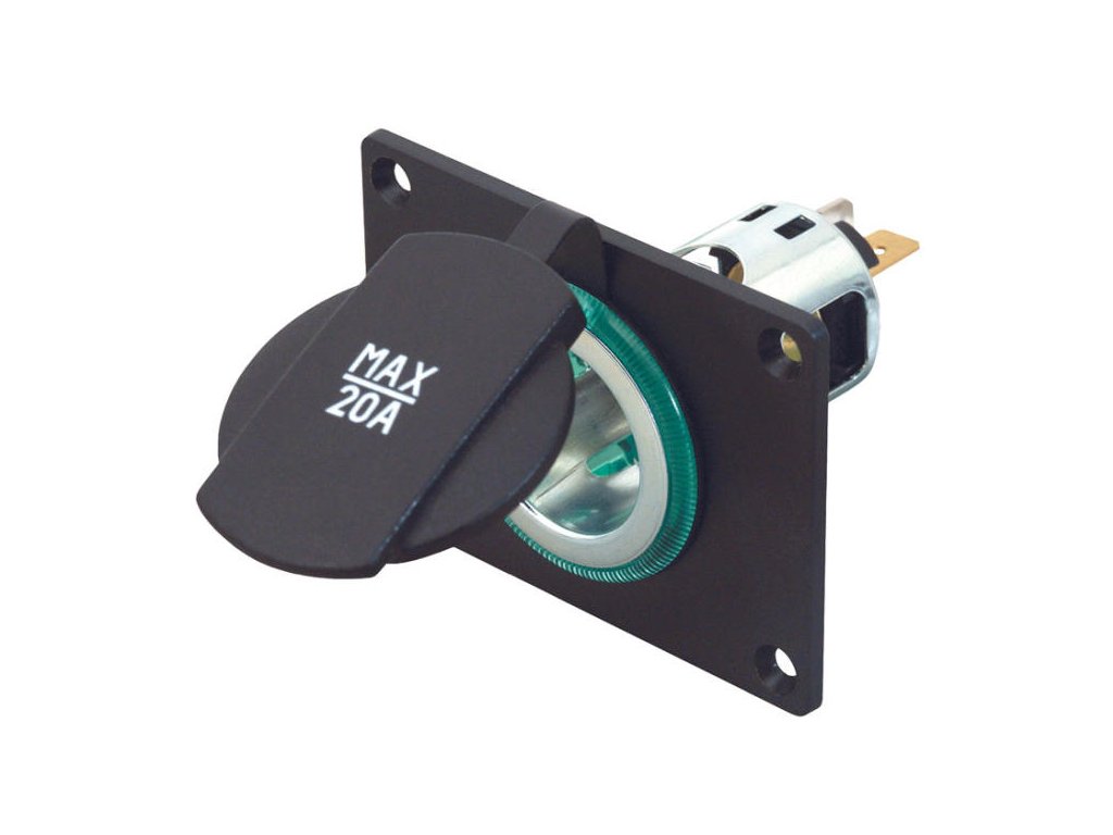 Vestavná zásuvka s víkem. Zatížitelnost až 20 A při kabelu 2,5 mm² nebo 16 A při kabelu 1,5 mm².| Kategorie: | Adaptéry 12V |
