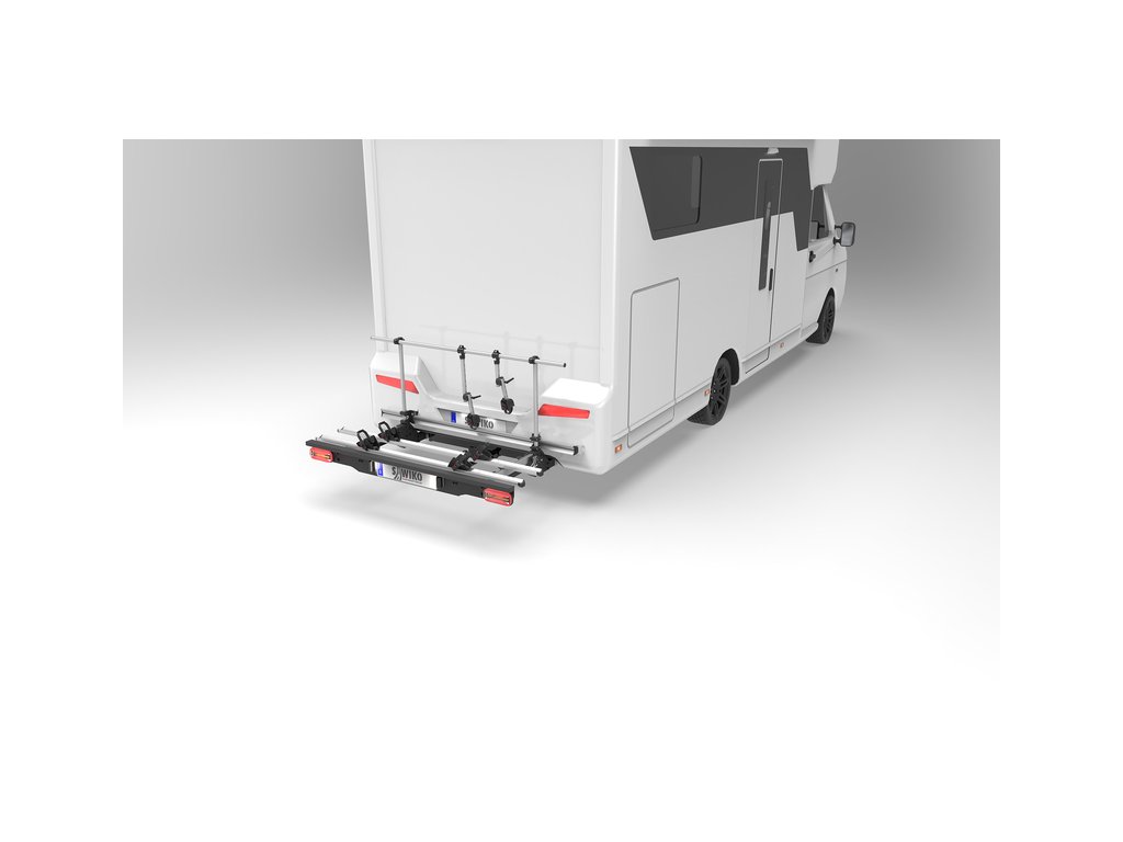 Sawiko VELO – univerzální nosič kol pro 2 kola/E-biky je odolný a flexibilní systém pro obytná auta, dodávky i běžná auta, který zpříjemňuje přepravu těžších elektrokol i běžných bicyklů díky vysoké nosnosti (do 80 kg) a praktickému designu s rychlouzávěry a sklápěním.