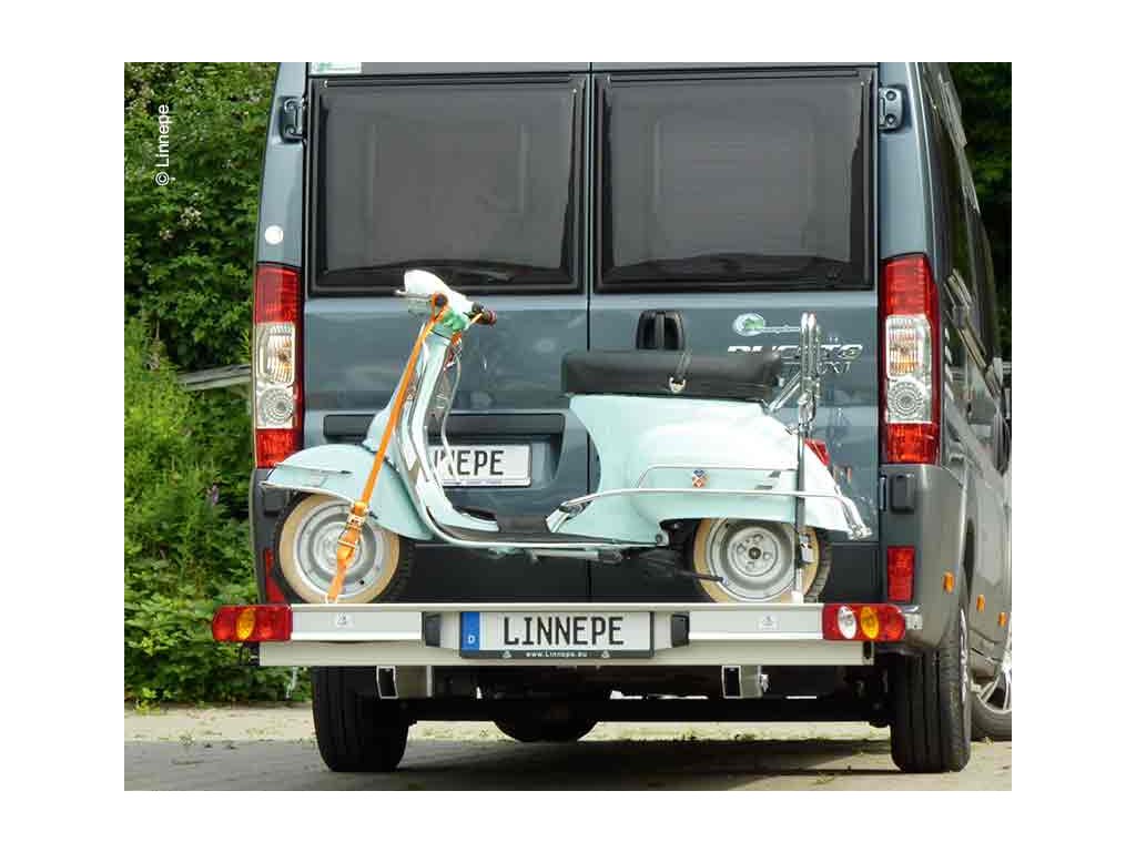 Linnepe Trigger pro Ducato od 1995 je robustní a dobře zpracovaný platformový nosič motocyklu/skútru, který kombinuje vysokou nosnost (~180 kg), nízkou vlastní hmotnost (~37 kg) a praktické funkce jako otevření zadních dveří s nákladem i integrální osvětlení