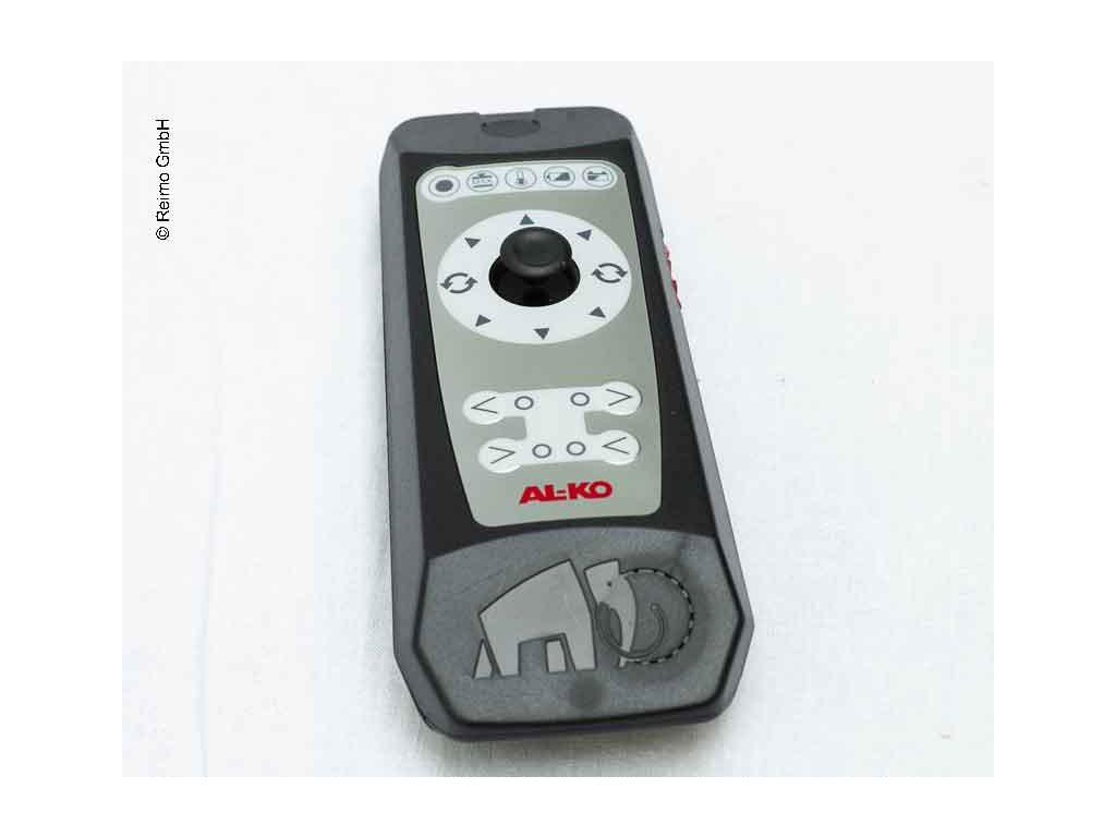Bezdrátový dálkový ovladač určený k ovládání manévrovacího systému Mammut od AL-KO, který umožňuje komfortní a bezpečné dálkové řízení manipulačního pohonu karavanu nebo přívěsu.