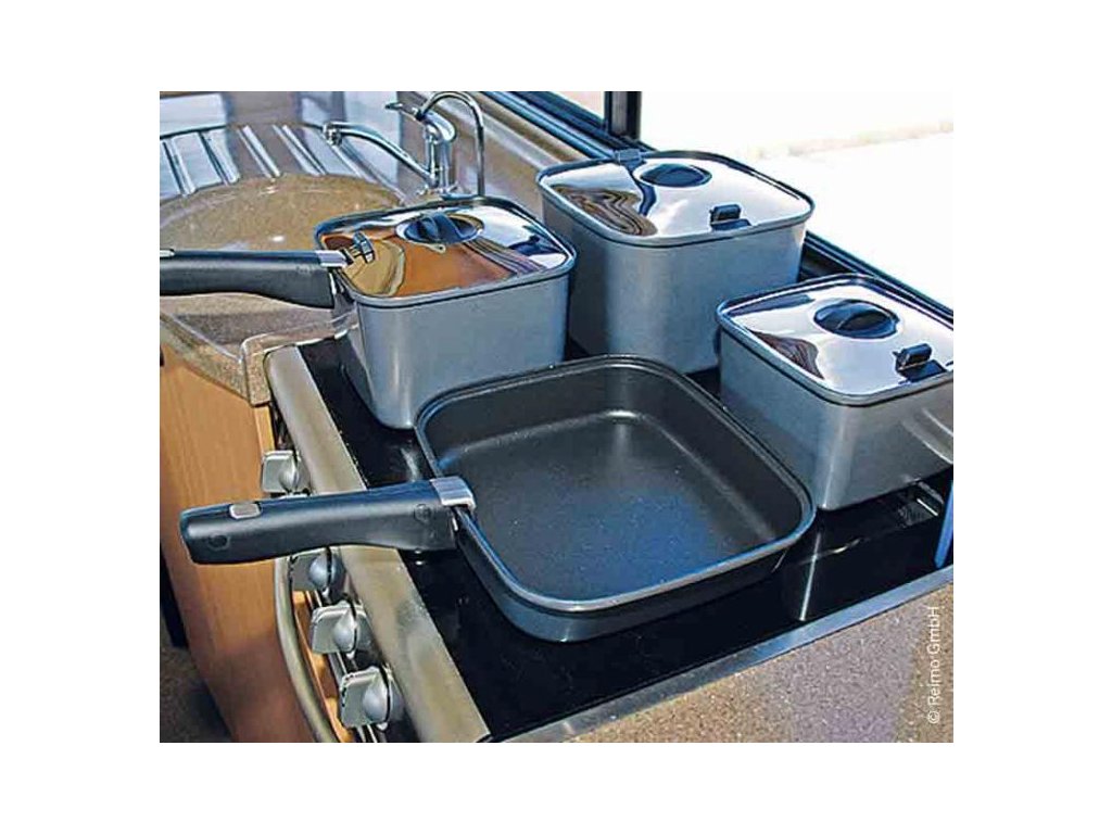Pánev s odnímatelnou rukojetí a silikonovým povrchem
