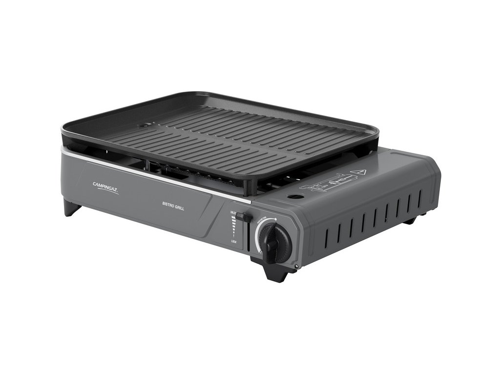 Campingaz Bistro Grill je kompaktní stolní plynový gril s výkonem 2 kW, velkou grilovací plochou a Piezo zapalováním, který funguje přímo s CP250 kartuší – ideální pro kempování, balkón, zahradu, festivaly nebo výlety