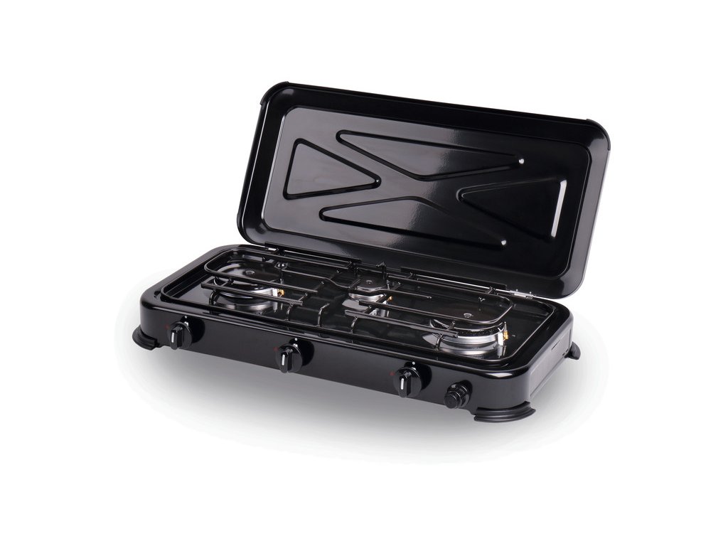Tříhořákový plynový vařič s piezo zapalováním a bezpečnostní pojistkou plamene, ideální pro kempování i venkovní vaření s běžným propan/butan plynem. Díky kombinaci výkonu až 5 kW, bezpečnostních prvků a kompaktní konstrukce je to praktické a spolehlivé řešení pro outdoor kuchyňku.