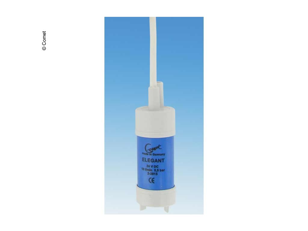 Comet Elegant 24 V je kompaktní 24 V DC ponorné vodní čerpadlo, které se používá pro čerpaní čisté vody (včetně pitné) v karavanech, obytných vozech, dodávkách, lodích nebo jiných mobilních instalacích. Je dodáváno s 1 m připojovacím kabelem a je navrženo pro jednoduchou vestavbu v nádržích nebo kontejneru s vodou.