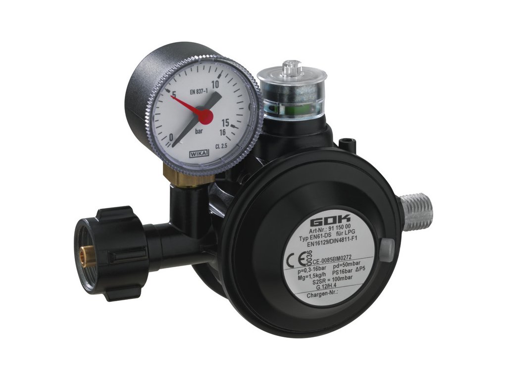 Pro připojení k plynovým lahvím, speciálně pro provoz plynových grilů. Ochranné zařízení proti přetlaku S2SR (ÜDS) pro zabezpečení spotřebičů před nepřijatelně vysokým tlakem. Viditelná indikace (zelená/červená) s optickým signálem (červená) při výstupních tlacích přes 80 mbar. Manometr pro zkoušku těsnosti např. při výměně lahví.