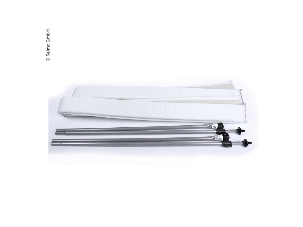Sada přítlačných tyčí s pěnovou patkou je namontována pro větruvzdorné spojení mezi bočnicí a karavanem.