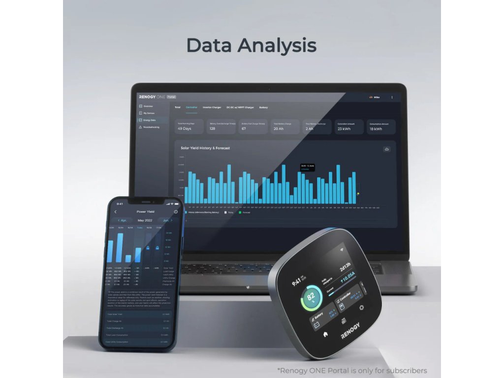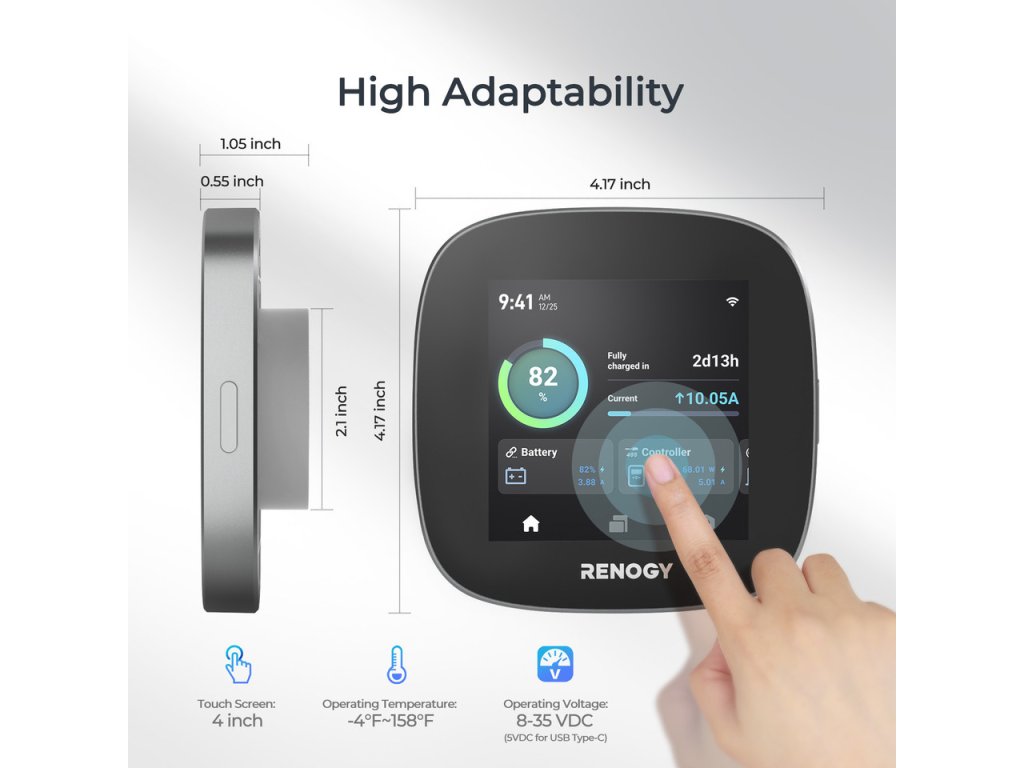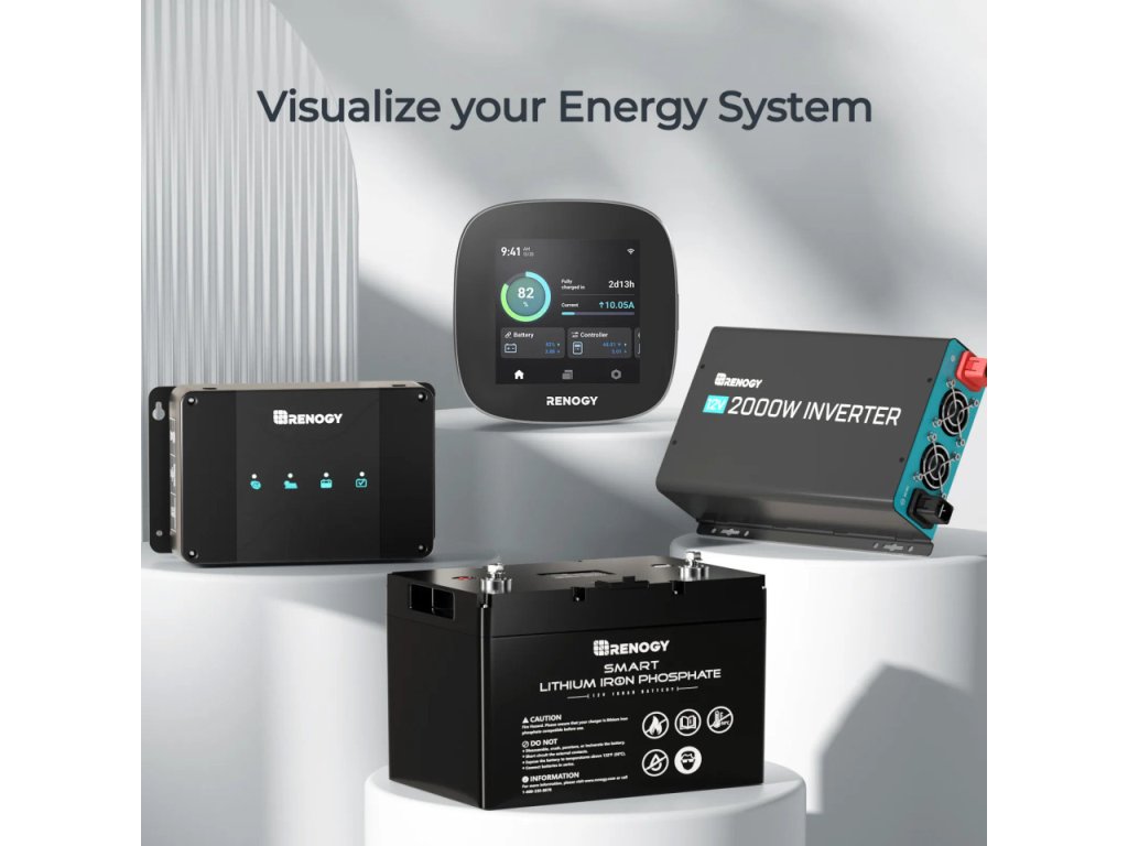 Renogy ONE Core je chytrý víceúčelový monitorovací panel, který poskytuje přehled o solárním systému, bateriích a energetické spotřebě v reálném čase. Umožňuje snadné sledování výkonu, stavů a statistik přímo na dotykovém displeji i prostřednictvím mobilní aplikace.