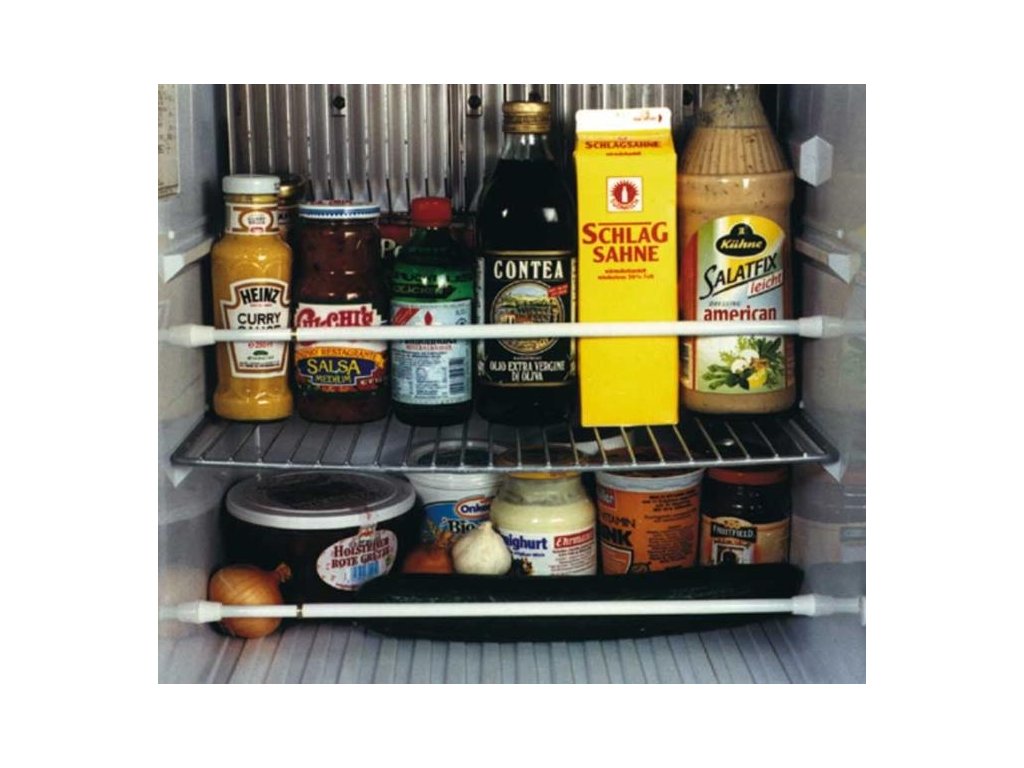 Teleskopické tyče zabraňují sklouznutí či vypadnutí potravin z lednice či úložných prostorů
