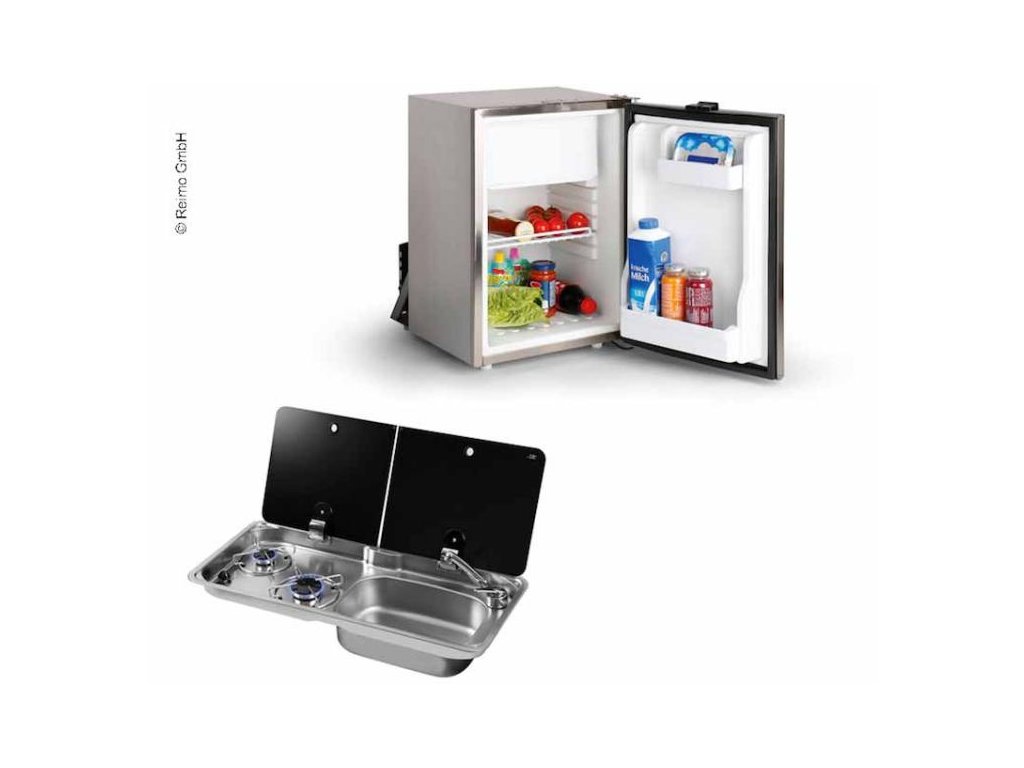 Zvýhodněný set kompresorové ledničky a kombinace vařiče se dřezem se skleněným víkem