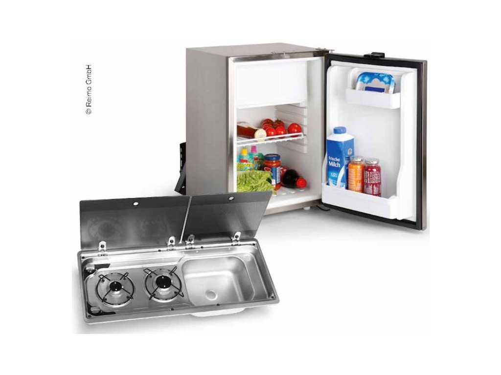 Zvýhodněný set kompresorové ledničky a kombinace vařiče se dřezem se skleněným víkem