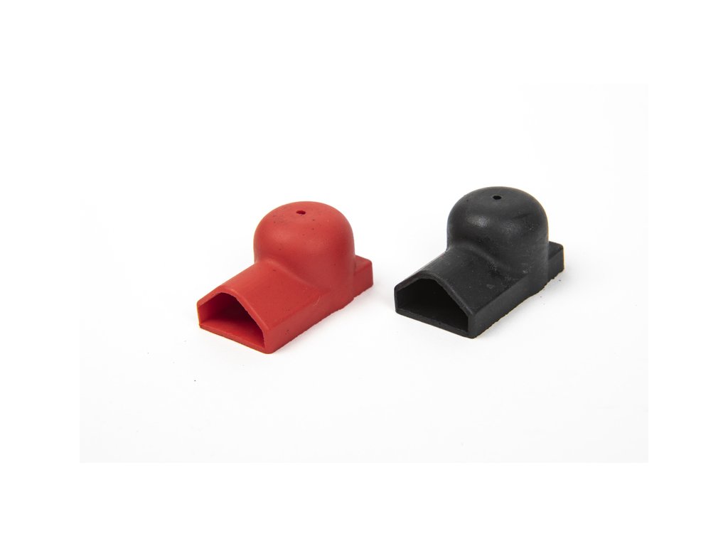 Toto je sada plastových krytek pólů baterie s M8 závitem – konkrétně 1× červená (plus) a 1× černá (minus) pro ochranu a bezpečné zakrytí svorek baterie s M8 šrouby.