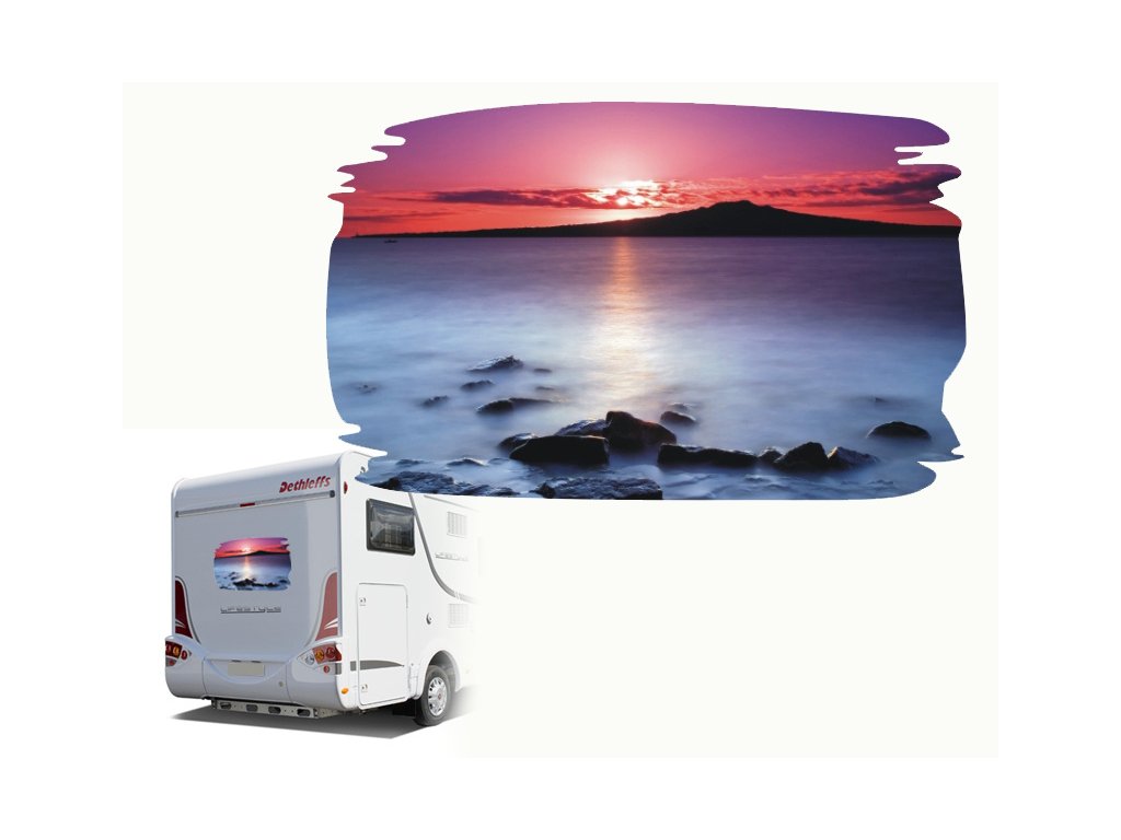 Vzhled většiny starších karavanů lze jednoduše vylepšit novou samolepkou. Ta původní je totiž natištěna na transparentní fólii za kterou na bombírovaném podkladu zatéká voda, která spolu se špínou a sluníčkem vytvoří nevzhledné černé mapy.