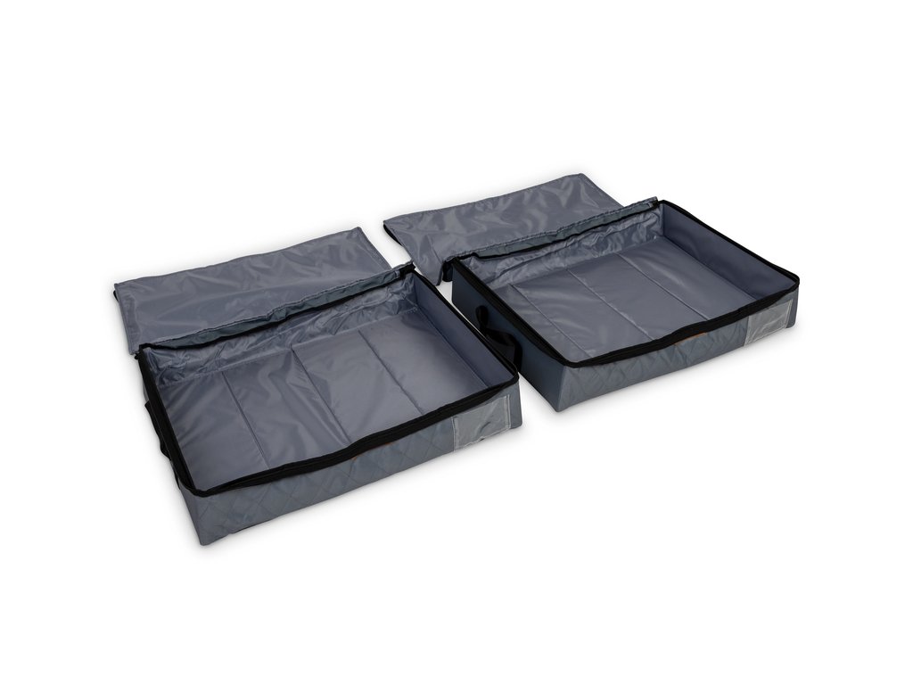 Praktická sada 2 skládacích boxů Holiday Travel v šedo‑melírovaném provedení s vloženým pevným dnem – ideální řešení pro organizaci věcí při cestování i doma.