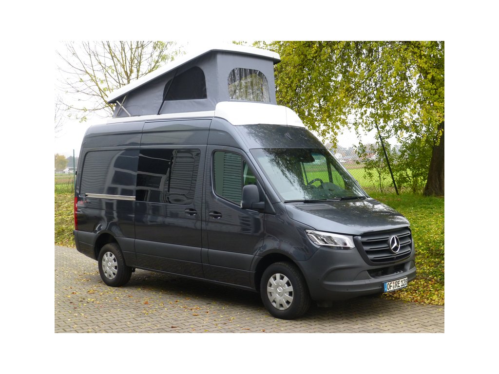 Střešní spaní pro Mercedes Sprinter Maxivan s vysokou střechou H2, délka 6 m, L2 nabízí 2 další pohodlná místa na spaní ve vašem dodávkovém voze. Je dodáváno vždy ve 3 dílech, aby bylo možné montáž co nejjednodušeji provést: mechanika střešní skořepiny a stanový vak, GfK podvozek a přední spoiler.