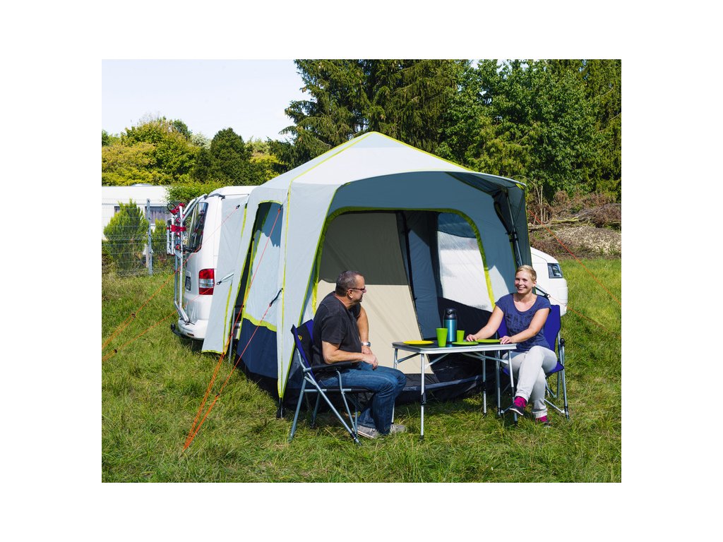 Reimo Premium Quick je rychle stavitelný stan / přístřešek pro obytné vozy a dodávky, ideální pro krátké i delší pobyty. Nabízí odolný materiál s vodním sloupcem ~4000 mm, velký prostor ~240×240 cm, vnitřní spací stan a rychlou montáž díky hliníkovému quick setup systému