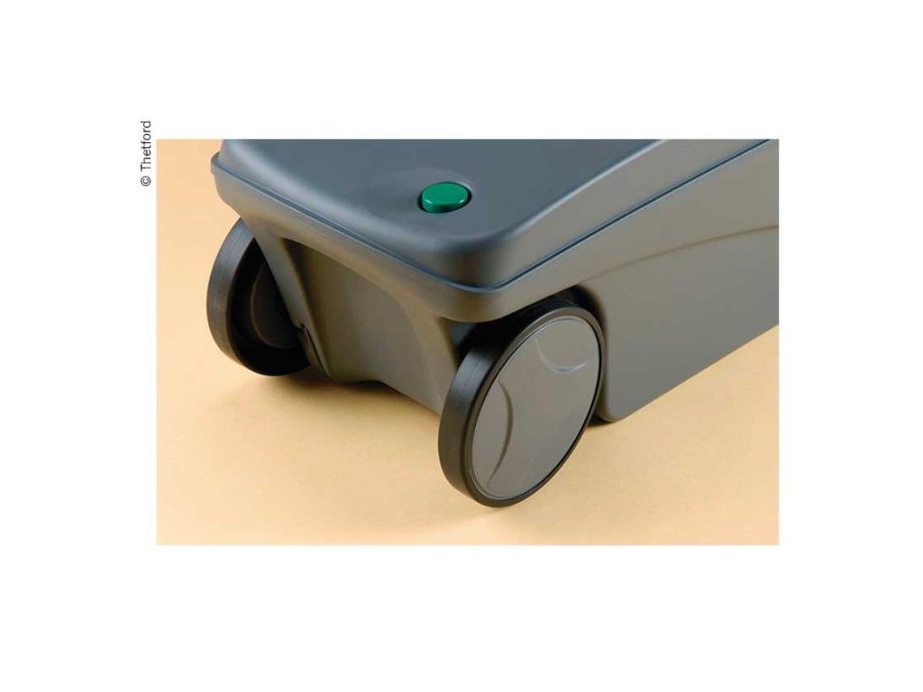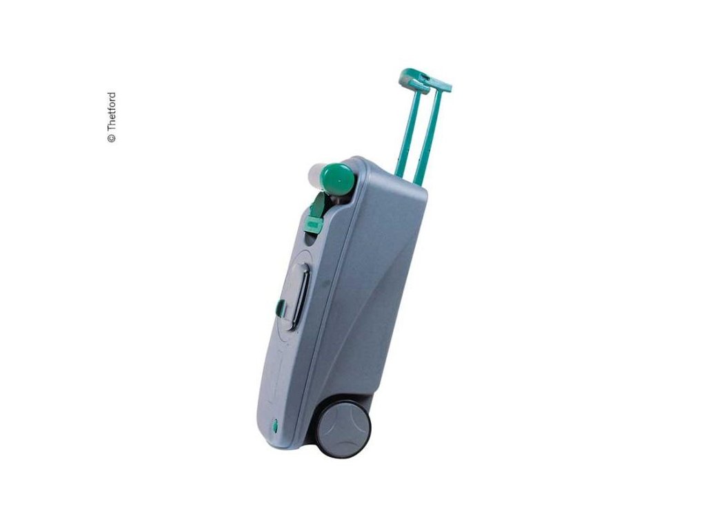Fekální nádoba je vybavena kolečky a výsuvným madlem