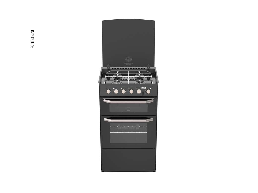 Thetford Caprice 3 je víceúčelový plynový sporák/kombinace vařiče, trouby a grilu pro karavany/obytná auta s výkonem 8,5 kW plynu, 3 hořáky, 36 l troubou, skleněným víkem a vestavnou konstrukcí vhodnou do 445 mm šířky modulu