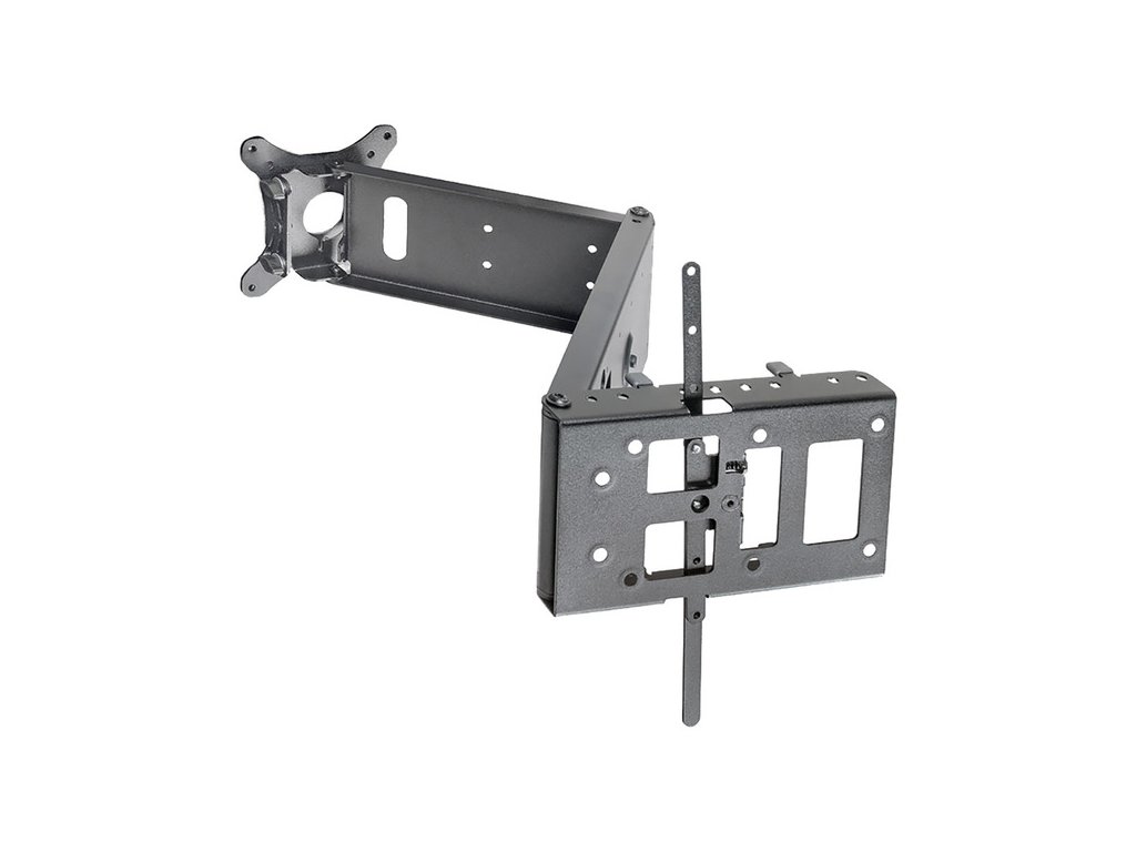 Nástěnný otočný a sklopný držák na televizory, ideální pro použití v obytných vozech, karavanech, dodávkách nebo klasických interiérech. Je navržen tak, aby umožnil flexibilní nastavení polohy obrazovky a zároveň bezpečné upevnění během jízdy i při sledování z různých úhlů.
