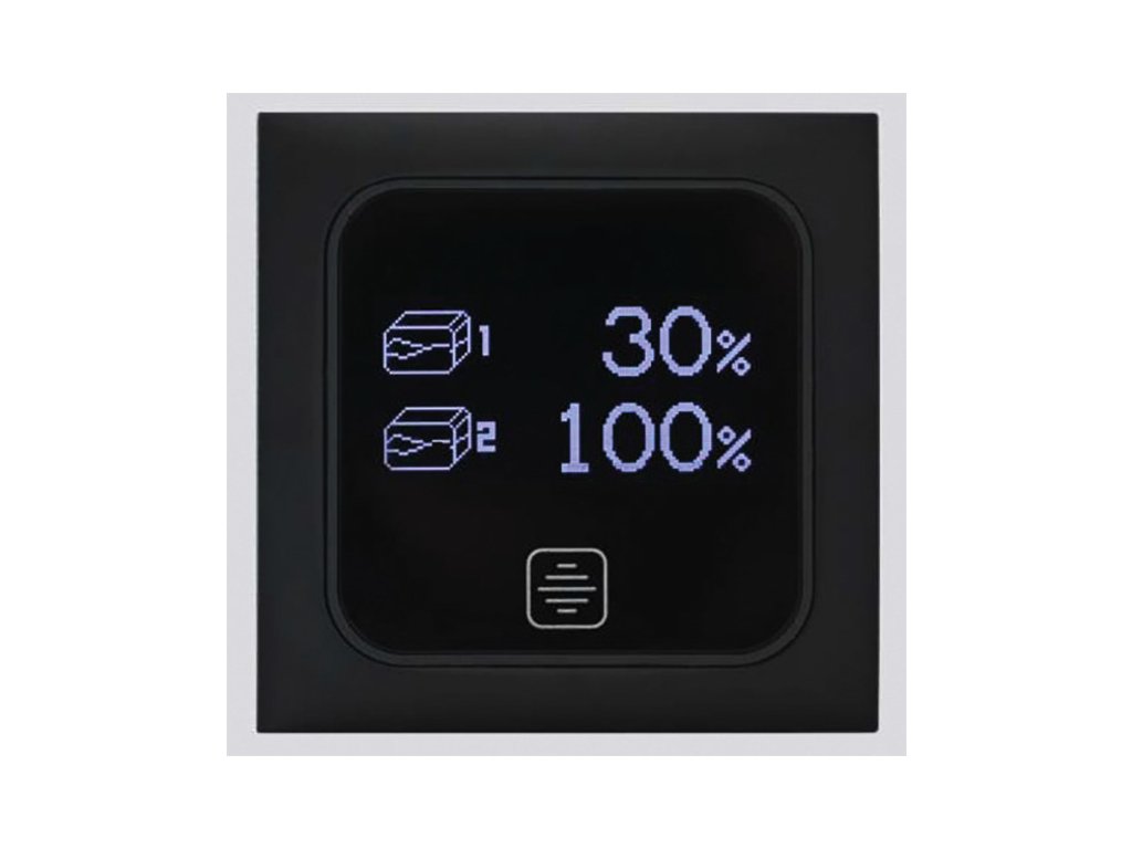 Jakmile je systém napájen, panel na OLED displeji zobrazuje aktuální stav hladiny nádrží v procentech – jasné a přesné, což je výhodné oproti starším segmentovým LED indikátorům.