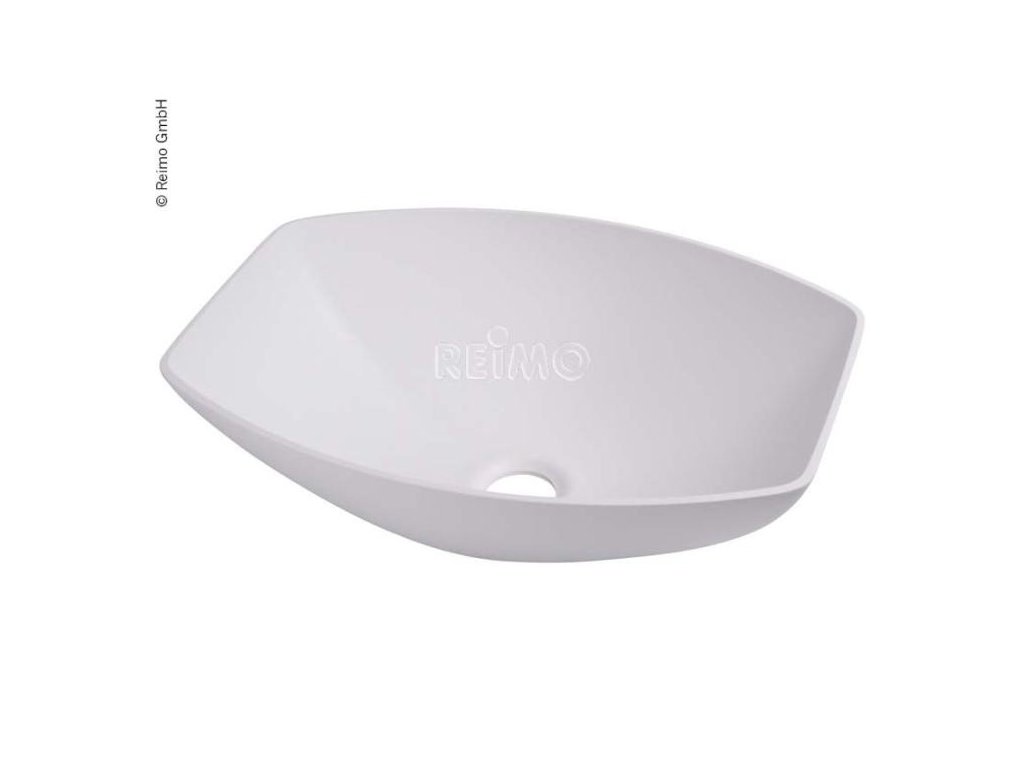 Designové umyvadlo vyrobené z plastu určeno k položení na desku nebo do částečné zástavby ve dvou velikostech